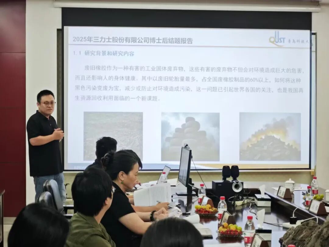 近日,三力士股份有限公司成功召开陈琪博士后出站结题报告会。会议邀请绍兴市柯桥区人社局副局长裘波、专技科科长王萍、国内橡胶领域知名专家教授及企业负责人共同组成评审专家组,对博士后研究项目进行严格论证与评审,最终陈琪博士后的研究工作获得考核组一致认可,顺利出站。